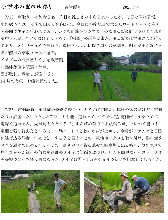 に行きましたヨ〜。次の草取りは8月7日。穂が出ると田んぼ
