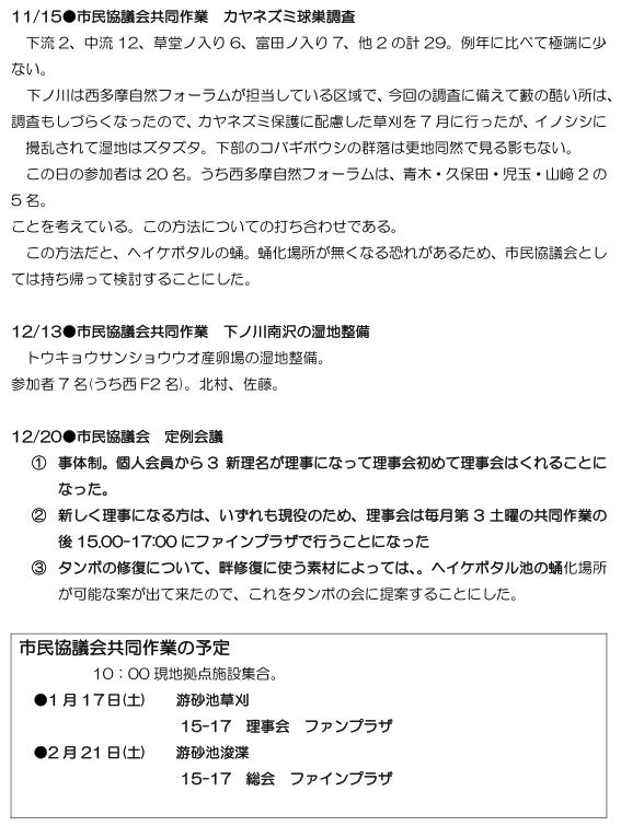 この間の活動と経過 前号ニュース(5/28発行)以降の市民協議会関係及び西多摩自然フォーラムの保全活動のみ