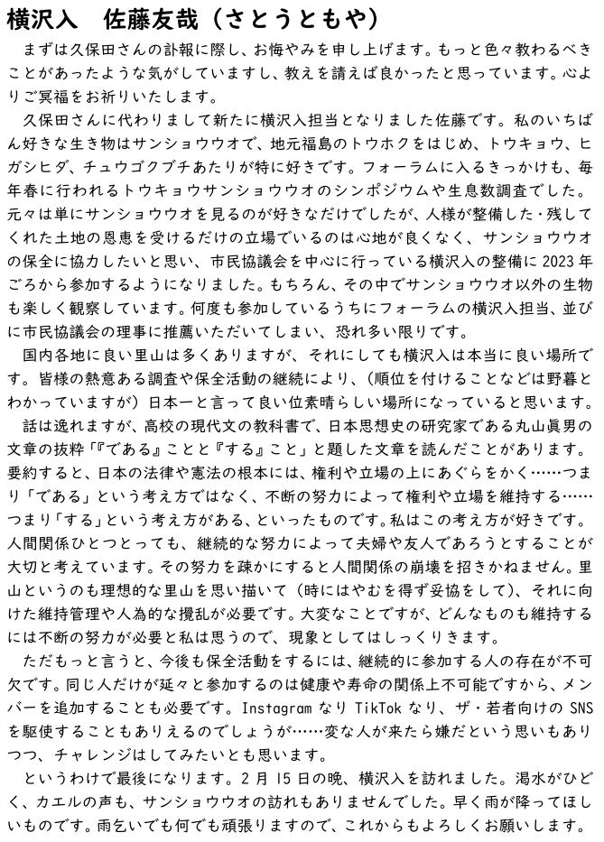 (3)横沢入運営協議会(6/28開催)の報告と意見交換、その他